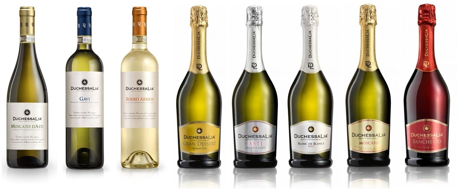 莫斯卡託山 (Moscato Hills) 擁有庫尼奧、阿斯蒂和亞歷山德里亞省一些最美麗的葡萄園,是莫斯卡托達斯蒂和阿斯蒂起泡酒的產地,Duchessa Lia 也將其製成乾型葡萄酒。Acquese 的斜坡使 Brachetto 產自本土的紅葡萄,散發出微妙的芳香。在亞平寧山脈與海風相遇的 Terre del Gavi 收穫了 Cortese 葡萄,Gavi 就是從這裡誕生的,它是皮埃蒙特最高貴優雅的白葡萄品種之一。最後,Dolcetto d'Alba 的 Dolcetto 葡萄是該地區最典型和最受歡迎的葡萄酒之一,來自阿爾巴陽光明媚的山丘,這裡是千年葡萄栽培的地方。