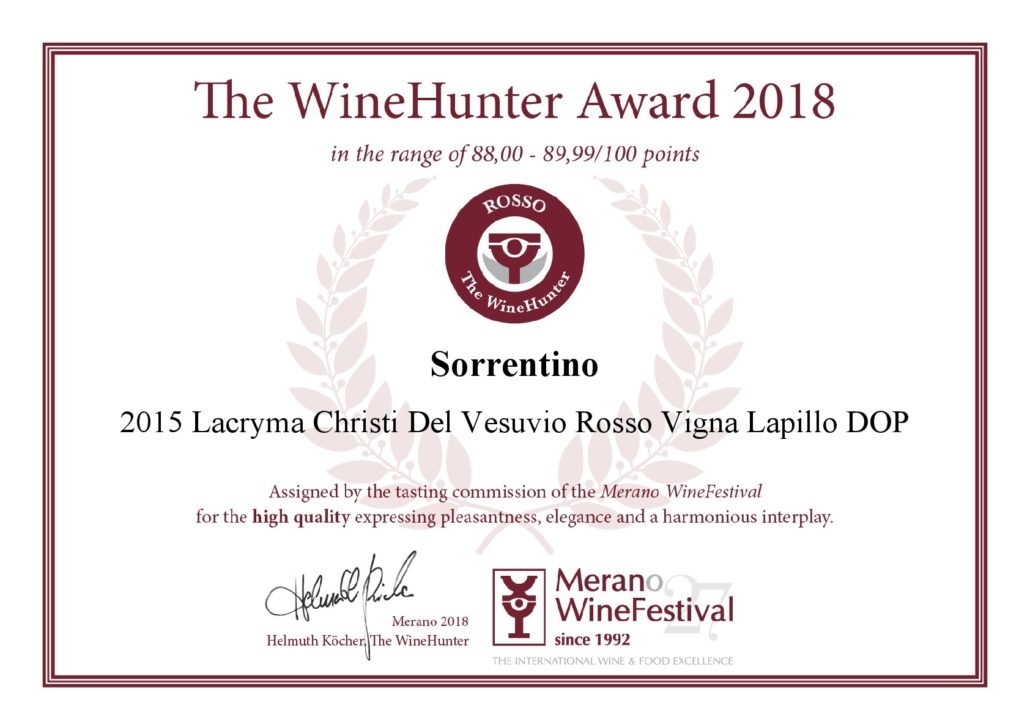 Vesuvian (維蘇威)葡萄酒以及Vesuvius (維蘇威人) 種植的所有葡萄的獨特性都歸功於其獨特的火山土壤。火山土壤的複雜性可以在該地區土壤及當地所種植的植被類型中找到,並且因應火山爆發過程中堆積的熔岩而發生變異。Sorrentino Vesuvian所有的葡萄園都位於西南面,包括其位於Lacryma Christi del Vesuvio DOC的葡萄園,無數的熔岩流流入海洋,使土壤富含礦物質、青金石,並具有高孔隙度和高排水性,非常肥沃。這成為了葡萄藤抵禦病原體的第一道防線,尤其是確保了未移植葡萄藤的保存。