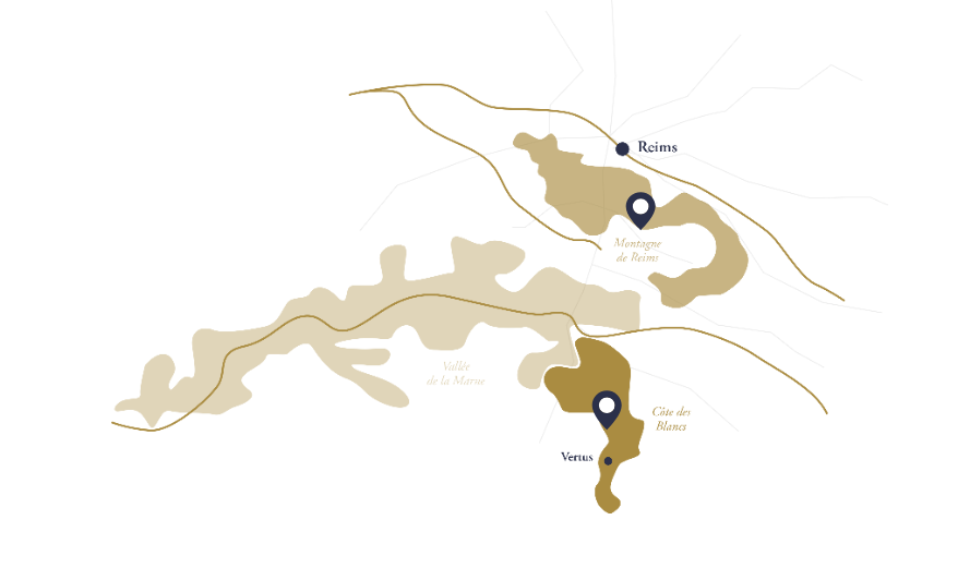 85% 的特級園和一級園,主要是夏多內的 Avize、Le Mesnil-sur-Oger、Oger、Trépail、Vertus; Aÿ、韋爾澤奈、安邦奈、阿韋奈黑皮諾