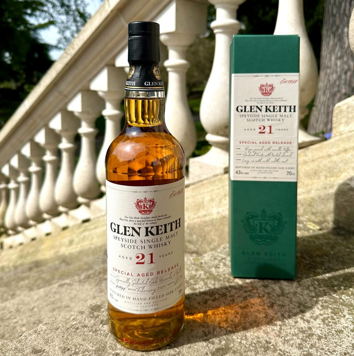 Glen Keith在21世紀首度正式推出年份威士忌。21年的Glen Keith以特選橡木桶及500公升桶製成,完美拿捏果香與甜香的平衡點,結合柔和的蜜桃味與鳳梨獨有的熱帶滋味,最後以濃厚的烤杏仁風味作結。