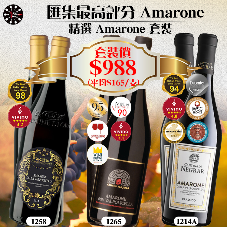 阿瑪羅尼(Amarone)的全稱是瓦坡里切拉阿瑪羅尼(Amarone della Valpolicella),產自威尼托(Veneto)北部的瓦坡里切拉(Valpolicella)產區。Amarone憑藉其獨特的風格聞名世界,其風格強勁有力,口感飽滿。阿瑪羅尼(Amarone)位列意大利葡萄酒的最高等級DOCG級別。
